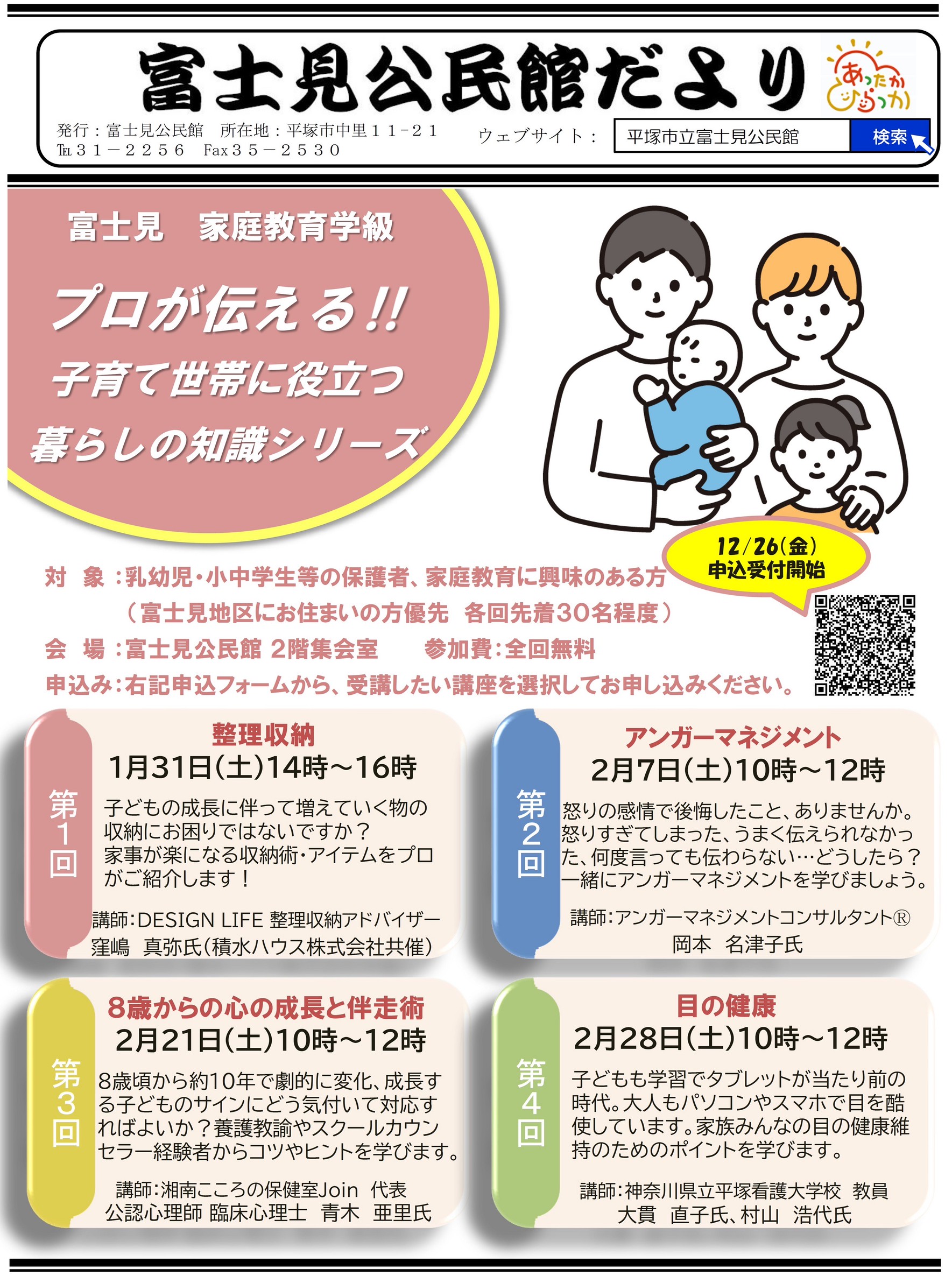 として、子育てや家庭生活に役立つテーマを、専門家から学べる連続講座です。